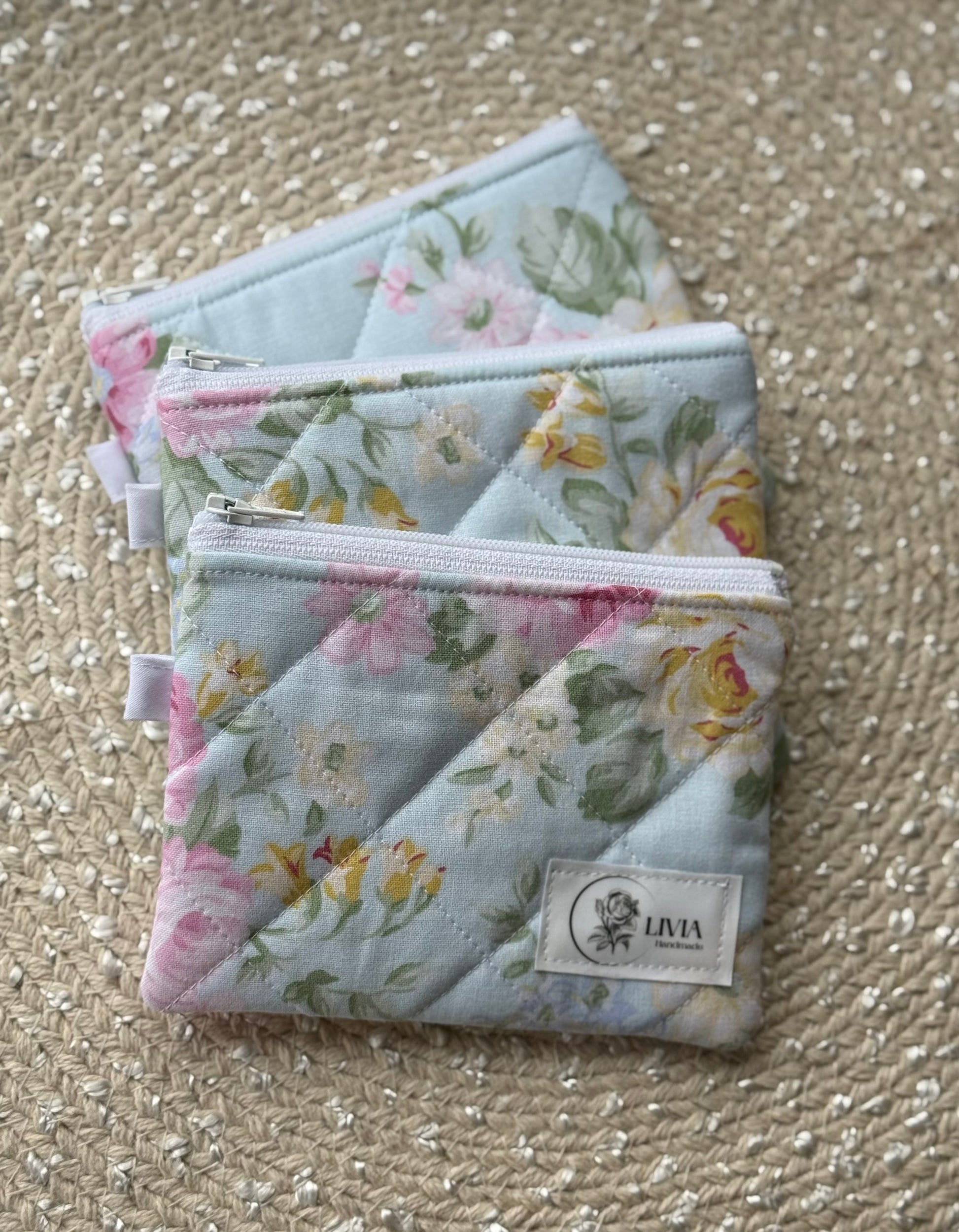 The perfect little treasure for your cash, cards, keys, or small essentials like earbuds. This handmade quilted wallet pairs beautifully with a wristlet, you can mix or match fabric patterns to suit your style!