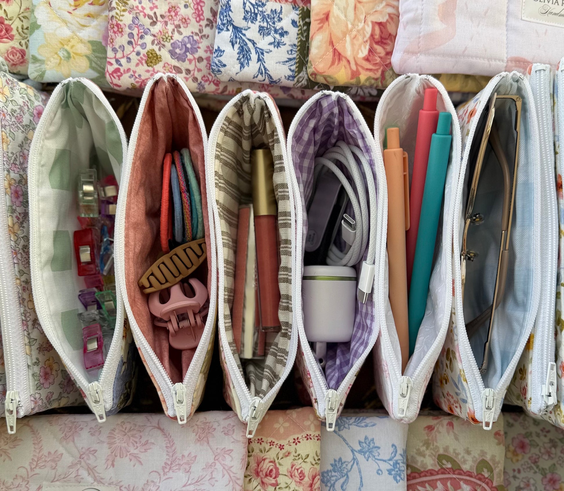 Pretty and practical, this pouch is perfect for sunglasses, hair accessories, jewelry, cosmetics and feminine products for your purse or vehicle. Organize your pens and pencils, art supplies, tech charging cords and adapters.